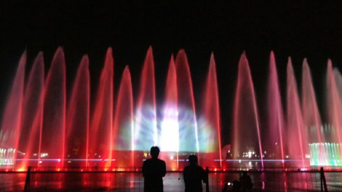 JABARNEWS | PURWAKARTA – Air Mancur Sri Baduga, di Situ Buleud Purwakarta, tetap dapat dinikmati warga, Kendati beberapa hari terakhir Purwakarta diguyur hujan deras, pertunjukan air mancur di lokasi itu tetap tak dihentikan.i