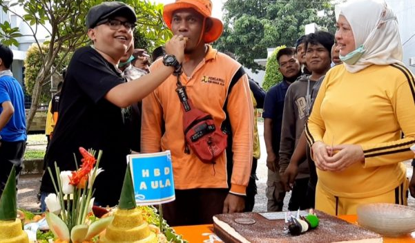 Yang menarik, setelah usai meniup lilin Aa Maula kemudian memanggil petugas kebersihan. Setelah itu, Aa maula menyuapi petugas kebersihan di hari ulang tahunnya tersebut yang dirayakan dipinggir jalan baru usai bersih-bersih di sepanjang jalan tersebut.