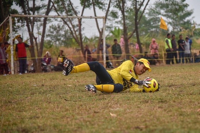 JABARNEWS | PURWAKARTA – Ada yang beda dalam sesi latih tanding ASAD Perkasa Jaya melawan Margaluyu FC di Lapangan Desa Margaluyu, Sabtu (1/9/2018) sore. Mantan Bupati Purwakarta yang juga Pembina ASAD Jaya Perkasa, Dedi Mulyadi berperan sebagai penjaga gawang dalam latih tanding tersebut.