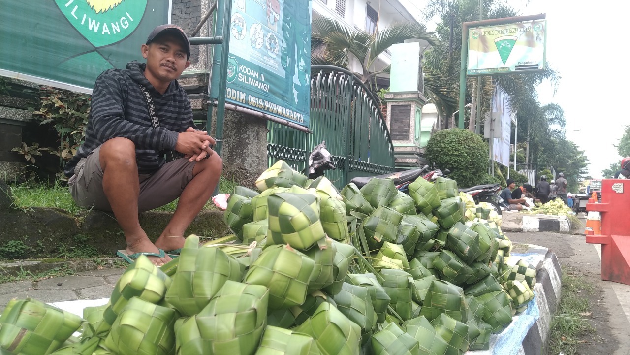 Ia mengaku berdagang ketupat hanya saat menjelang Lebaran Idul Fitri, sedangkan pada hari-hari biasa, ia berprofesi sebagai pengarah roster di Kecamatan Plered. Di hari pertama berjualan, ia mengaku memang masih sepi, tidak sampai 5 orang pembeli.