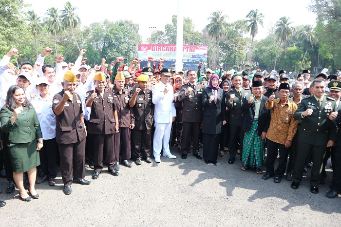 JABARNEWS | PURWAKARTA – Peringatan HUT ke-73 TNI yang digelar Kodim 0619 Purwakarta di Lapangan Bakorwil, Kelurahan Nagri, Kecamatan Purwakarta, Jumat (05/10/2018) berlangsung cukup khidmat. Berbagai unsur hadir dalam upacara yang digelar pukul 08.00.