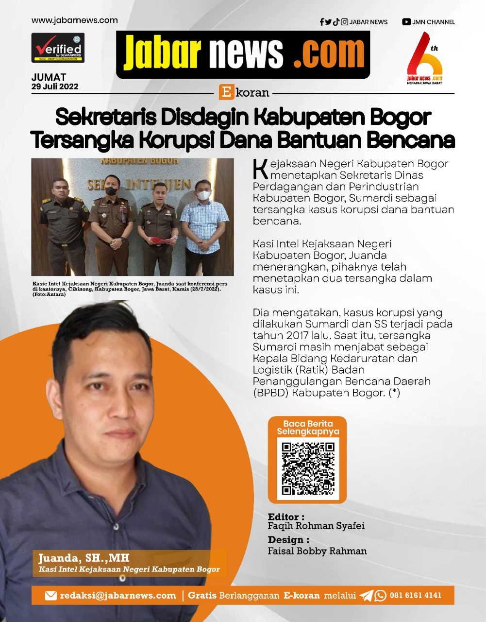 Beranda E-Koran Sekretaris Disdagin Kabupaten Bogor Tersangka Korupsi Dana Bantuan Bencana E-KoranSekretaris Disdagin Kabupaten Bogor Tersangka Korupsi Dana Bantuan BencanaFaqih Rohman Syafei0 min baca29 Juli 2022 - 13:0030 Juli 2022 - 06:35×Sekretaris Disdagin Kabupaten Bogor Tersangka Korupsi Dana Bantuan BencanaSebarkan artikel ini Sekretaris Disdagin Kabupaten Bogor Tersangka Korupsi Dana Bantuan Bencana Baca Juga: Imron Ajak Seluruh Pihak Sukseskan Pilkades Serentak 2023 Berita TerkaitE-KoranAi Saadiyah Dwidaningsih: Program Jabar Caang Sediakan Listrik Bagi 121.871 KeluargaE-KoranFarabi El Fouz: RS Paru Sidawangi Tingkatkan Layanan Kesehatan RegionalE-KoranDedi Mulyadi: Jalan Tol Pasteur-Lembang Untuk Atasi Kemacetan BandungE-KoranErni Daryanti: Perubahan Undang-Undang Untuk Pariwisata Ramah DisabilitasE-KoranKPU Purwakarta Tetapkan Paslon Zeinjo Sebagai Pemenang Pilkada 2024E-KoranBey Machmudin: Jawa Barat Siap Luncurkan Program Makan Bergizi Gratis