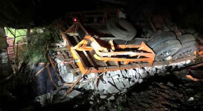 “Kecelakaan tunggal, kita lakukan pemeriksaan pengemudi dan saksi. Kita cek juga kelengkapan surat kendaraan, diduga kelebihan muatan ditambah kondisi jalanan menurun sehingga sopir kehilangan kendali,” kata Riki kepada wartawan di lokasi kejadian.