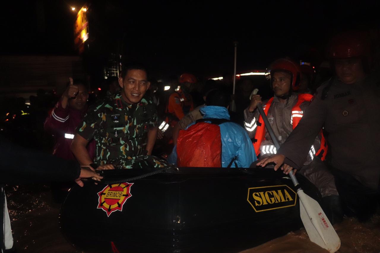 Komandan Satuan Brimob Polda Jabar Kombes Pol. Asep Saepudin bersama dengan Wadansat dan Danyon A Pelopor Satbrimob Polda Jabar terjun langsung membantu proses evakuasi Korban Banjir akibat meluapnya Sungai Cikeruh dan Sungai Citarik.