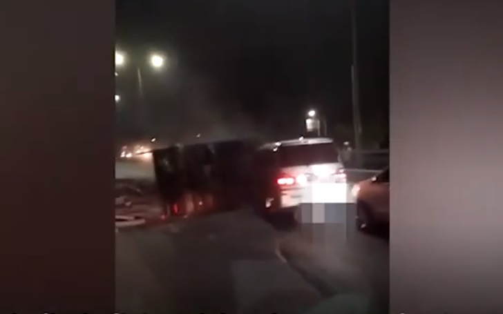 Seorang pria yang diduga kru truk, berdiri di dekat truk untuk mengamankan TKP dan telah membuat sebuah tanda batas jalan. Tiba-tiba saja sebuah mobil Toyota Alphard bernopol B-2300-WW melaju kencang dan menabrak truk yang terguling di lajur 3.