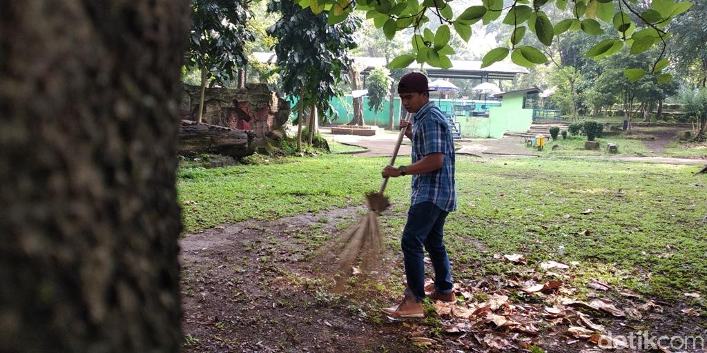 Berbekal sapu berukuran sedang, bapak satu anak ini membersihkan area taman dekat kandang Ozon, sang orang utan yang diberi rokok. Ia diberi arahan oleh seorang petugas Bunbin Bandung. Suasana di Bunbin sepi, belum ada pengunjung yang datang.