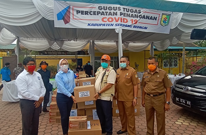 JABARNEWS | SERDANG BEDAGAI – Pemerintah Kabupaten (Pemkab) Serdang Bedagai, Sumatera Utara mendapat bantuan alat pelindung diri (APD) berupa masker, sabun cuci tangan dan hand sanitizer dari Regal Springs Indonesia.