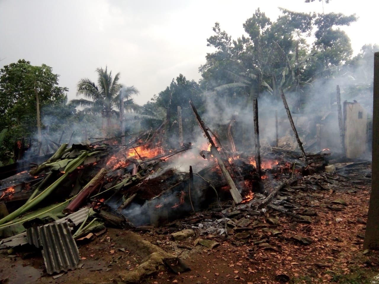Menurut, Kapolsek Bojong, Iptu Teguh Sujito, kebakaran sekitar pukul 15.00 WIB, diduga api berasal dari kabel yang terkena air hujan, mengakibatkan terjadinya percikan api dan membakar semua bagian rumah dan isinya milik ma Ai.