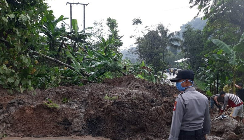 Ia menanmbahkan dengan adanya jalan yang tertutup longsoran tanah tebing sehingga tidak bisa dilintasi kendaraan bermotor dari dua arah.