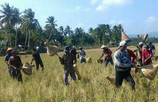 Dengan membawa alat nampaling atau alat untuk menangkap belalang berbahan bambu disebut tampaling, warga berburu belalang ke sawah beramai-ramai dan hasil tangkapannya bempa belakang dimasukkan ke dalam toler yang bahannya juga terbuat dari bambu sama dengan tampaling. (Des)