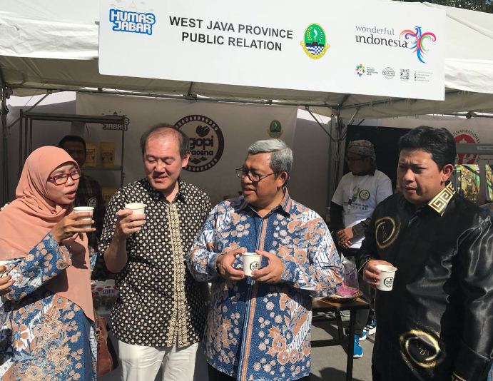 JABARNEWS | NAGOYA – Pemerintah Provinsi Jawa Barat turut berpartisipasi pada 2nd Indonesia Week 2018 Nagoya, Jepang berlokasi di bawah Nagoya TV Tower di Mochinoki Hiroba (Central Park), Sabtu-Senin (28 – 30/4/18). Kopi Jawa Barat di Stand Ngopi Saraosna edisi mini serta Stand Dekranasda menjadi andalan komoditas yang dipamerkan Pemprov Jabar di sana.