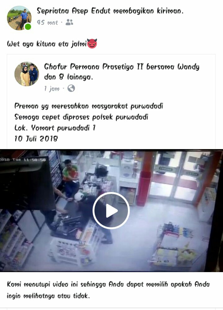 Video berdurasi 2 menit 45 detik ini berisi aksi pemuda diketahui berinisial An mendatangi mini market yang saat itu ada dua orang pegawai.