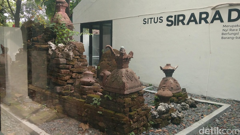 Di lokasi reruntuhan tercatat keterangan bahwa reruntuhan bata merah dan bebatuan itu bernama Situs Sirara Denok. Dalam keterangannya, situs ini merupakan sisa reruntuhan dari gedong Nyi Rara Denok yang dibuat abad ke-14. Bentuknya tidak jauh berbeda dengan Taman Air Gua Sunyaragi Cirebon.