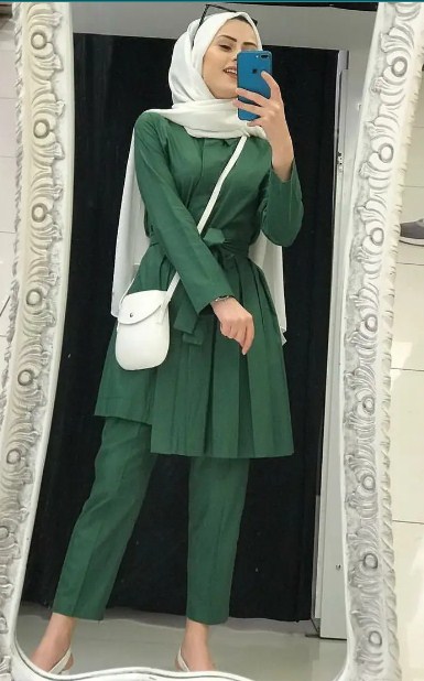 Warna putih selalu jadi pilihan yang aman, apalagi kalau dipadukan dengan hijau botol. Keduanya saling melengkapi, memberikan kesan minimalis, dan tentunya tetap elegan. Coba deh kenakan pashmina putih yang ditata layering simpel, dijamin penampilanmu jadi makin chic. Kombinasi ini cocok banget buat kamu yang pengen tampil effortless tapi tetap modis.