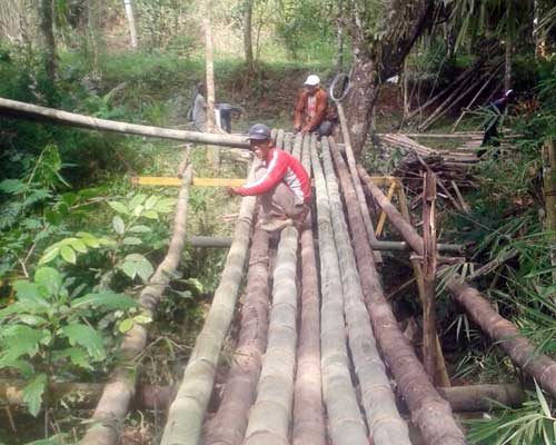 “Semoga ada bantuan secepatnya untuk membangun jembatan permanen. Kasian warga disini setiap harinya harus rela melintas jembatan bambu. Apalagi jika musim hujan, badan jembatan selain licin juga dikhawatirkan dapat diterjang kembali oleh banjir,” timpalnya.